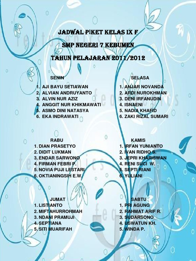 Desain Jadwal Pelajaran Keren Kreatif Dan Minimalis Kepoindonesia from 1.bp.blogspot.com Pembuatan jadwal saat ini tidaklah terlalu sulit bahkan bisa dikerjakan dalam waktu yang cepat dengan bantuan software pembuat jadwal. Desain jadwal piket kreatif juga sering menjadi daya tarik bagi siswasiswi. Tentu yang namanya organisasi harus mempunyai struktur yang pasti agar tugas tugas yang menjadi ruang lingkup kelas itu dapat dengan jelas dibagi bagi. Template sudah siap dimodifikasi jadi tidak perlu repot mendesain ulang lagi. Download contoh desain jadwal piket kreatif dan unik terbaru penulis cilik kreatif struktur organisasi desain. Hapus bagian yang tidak diperlukan, tambahkan bagian yang diinginkan. Namun seringkali siswa yang ditugaskan untuk membuat jadwal piket kebingungan untuk membuatnya karena mereka ingin membuatnya jadwal piket yang tampak unik tetapi belum mahir. Contoh desain jadwal piket kelas.