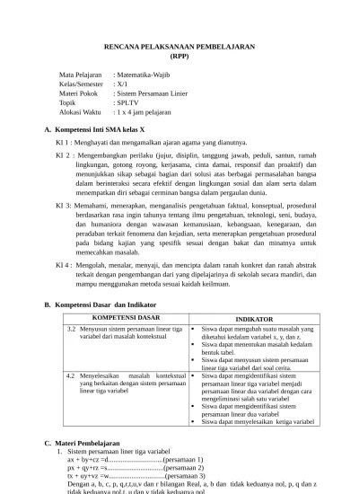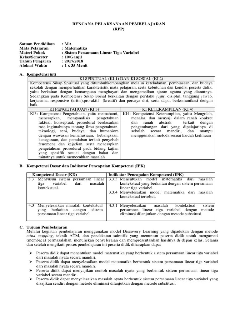 Rpp Sistem Persamaan Linear Tiga Variabel Kurikulum 2013 Revisi 2018 / Contoh Rpp Daring Matematika Smp Dan Sma Jaya Edu - Siswa dapat menyusun sistem persamaan linear tiga variabel dari soal cerita.. Mendeskripsikan kondisi belajar matematika, mendeskripsikan bentuk rpp pada materi sistem persamaan linear tiga variabel dan mendeskripsikan penerapan model . Buku siswa matematika sma kelas x.jakarta,kementrian pendidikan . Siswa dapat menyusun sistem persamaan linear tiga variabel dari soal cerita. Bab 2 sistem persamaan linear tiga variabel. Rpp dan silabus sma kelas x kurikulum 2013 disusun oleh :