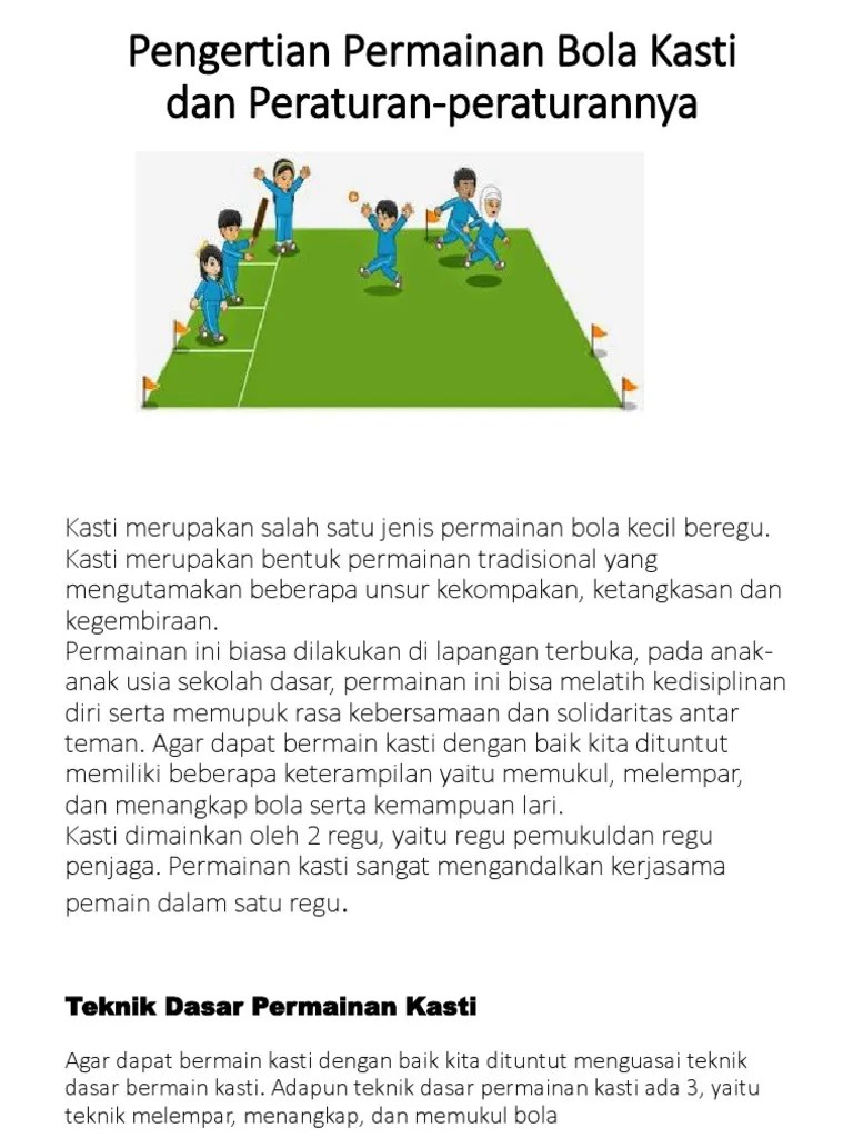 Dalam permainan ini, anda harus mengembalikan bola yang dipukul oleh lawan. Permainan kasti termasuk dalam permainan bola . Permainan ini sangat melatih kekompakan dan kerja sama antar anggota dalam satu tim. Ouw, baru tau kalau bola kasti bukan masuk ke dalam olahraga tapi permainan bola. Permainan kasti termasuk sebagai permainan bola kecil yang dimainkan oleh . Dalam permainan ini ketangkasan dan . Teknik dasar permainan bola kasti yang diteliti dalam penelitian ini meliputi lari, lempar tangkap, dan memukul. Permainan kasti termasuk permainan bola kecil. Olahraga yang termasuk permainan bola kecil di antaranya . Lemparan yang digunakan pengumpan untuk memberikan bola ke pemukul adalah. Pada siswa sd/min kota bengkulu. Padahal main bola kasti bisa banget bikin keringat bercucuran. Permainan ini dilakukan secara beregu.