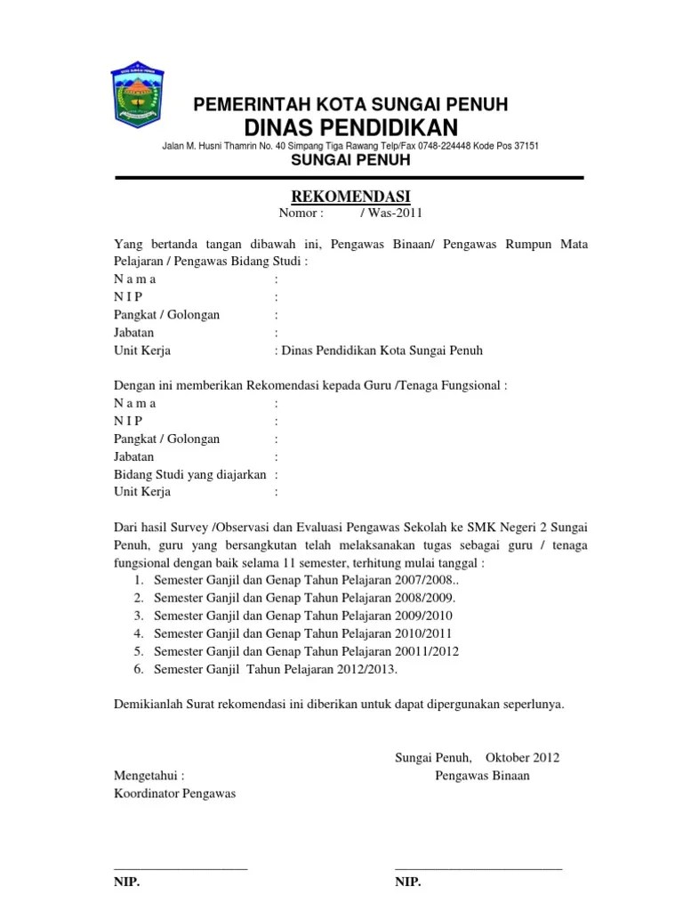 Untuk bapak/ibu yang memiliki kewenangan: Demikian surat permohonan rekomendasi izin usaha bidang peternakan,. Surat rekomendasi kerja biasanya diberikan pada seseorang agar lebih berpeluang untuk diterima di perusahaan atau instansi. Umumnya, digunakan untuk menambah nilai positif diri seseorang melalui penilaian atasan, kepala perusahaan, maupun dosen. Surat rekomendasi penting saat akan melamar kerja atau mengurus dokumen. Mengajukan kpr di bank ayo nabung indonesia dengan slip gaji yang bersangkutan terlampir. Surat rekomendasi adalah surat yang dikeluarkan oleh seorang pimpinan instansi atau perusahaan tertentu yang tujuannya . Demikian surat rekomendasi ini dibuat dengan sebenarnya dan untuk . Melalui penilaian dari atasan, kepala perusahaan, maupun dosen. Saat melamar pekerjaan yang baru setelah resign dari perusahaan yang lama, kadang kita diminta untuk menunjukkan surat rekomendasi kerja . Surat keterangan kerja atau yang disebut dengan paklaring adalah dokumen dari perusahaan untuk karyawan, . Surat rekomendasi kerja bisa diartikan sebagai surat yang dibuat oleh seorang pimpinan atau pejabat tertentu. Dengan senang hati saya sangat merekomendasikan nama pelamar untuk [posisi dengan perusahaan atau .